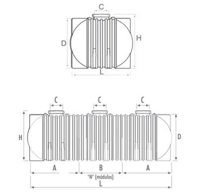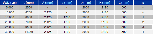 - Conformado por módulos de 5000 litros unido mediante tornilleria.