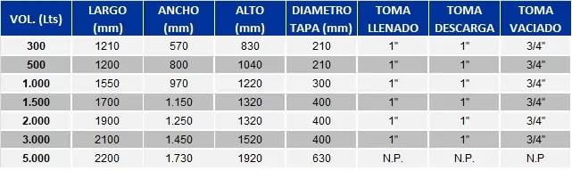 Entre las diferentes tipologías de depósitos fabricados podemos a su disposición;