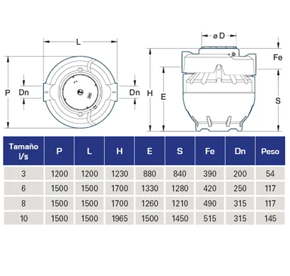 Dimensiones: – Diámetro: 1.500 mm
